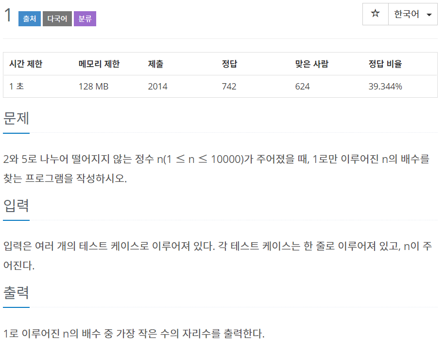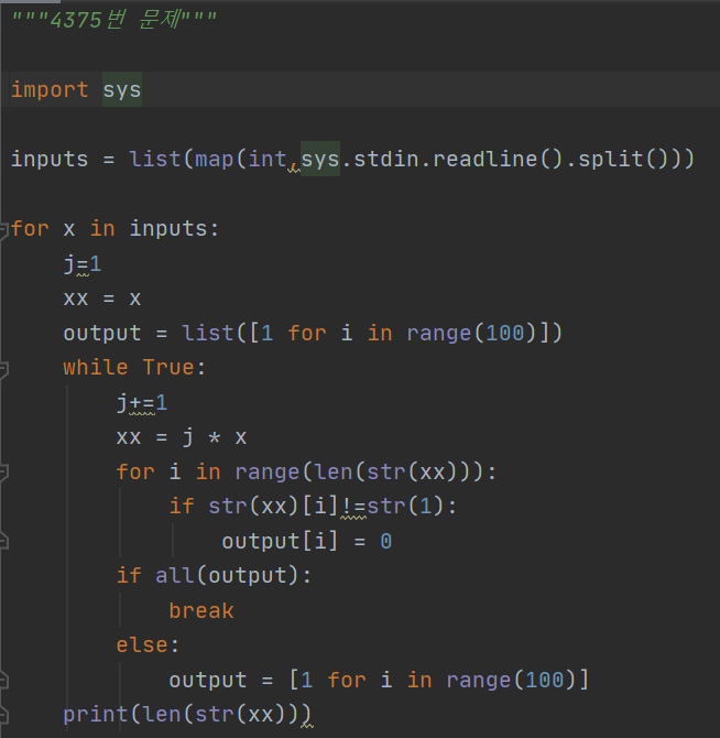 주어진 예시를 가지고 생각하면, 3이 input으로 들어가면 111이 3의 배수 중 1로만 이루어진 가장 작은 수가 되고 이 수가 3자리 수 이므로 3이 출력된다.