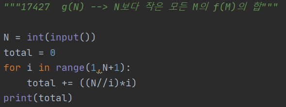 즉, i가 N//i 번씩 더해지는 규칙을 찾을 수 있다.