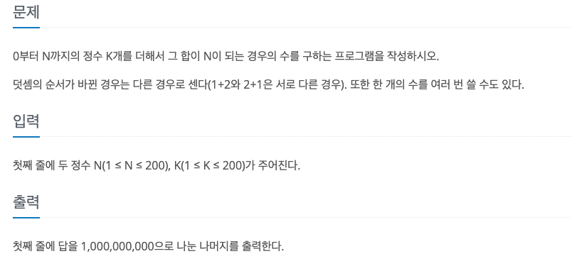 찾아낸 점화식 => cache[i][j] = cache[i-1][j] + cache[i][j-1] ( N & K가 2 이상일 때 )